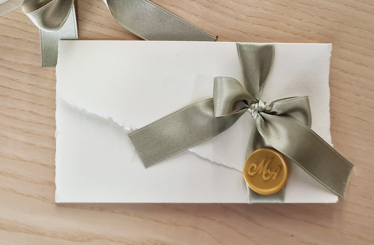 Carta Amalfi nastro Raso spesso Verde Salvia ceralacca