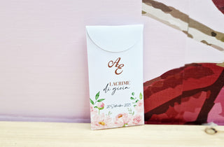 Fabriqué en carton et personnalisé avec les noms des mariés, déjà emballé avec du riz antitache.